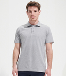 Ribbed knit collar. Taped neck. Three self colour button placket. Side vents. Twin needle sleeves and hem.